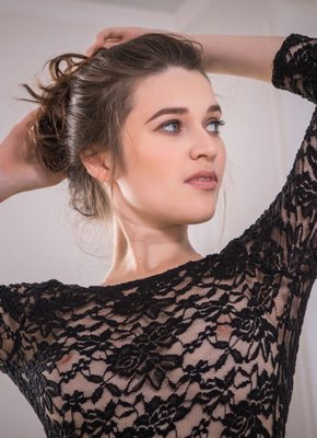 Описание: Эротично позируя дома, молодая милашка в черном кружевном боди, в процессе начав раздевается, оголила весьма сексуальное тело с худенькой талией. В будущем устраиваясь на кресле и полу, стройняшка подробно демонстрирует бритую письку с волосатым лобком и натуральные упругие сиськи.