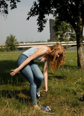 Описание: Наслаждаясь летним денем, гуляя на улице, в какой-то момент привлекательная девушка с вьющимися локонами оголяет сексуальные натуральные сиськи. В будущем молодая красотка снимает джинсы и в эротичном боди забирается по коленки в речку, продолжая засвечивать себя со всех сторон.