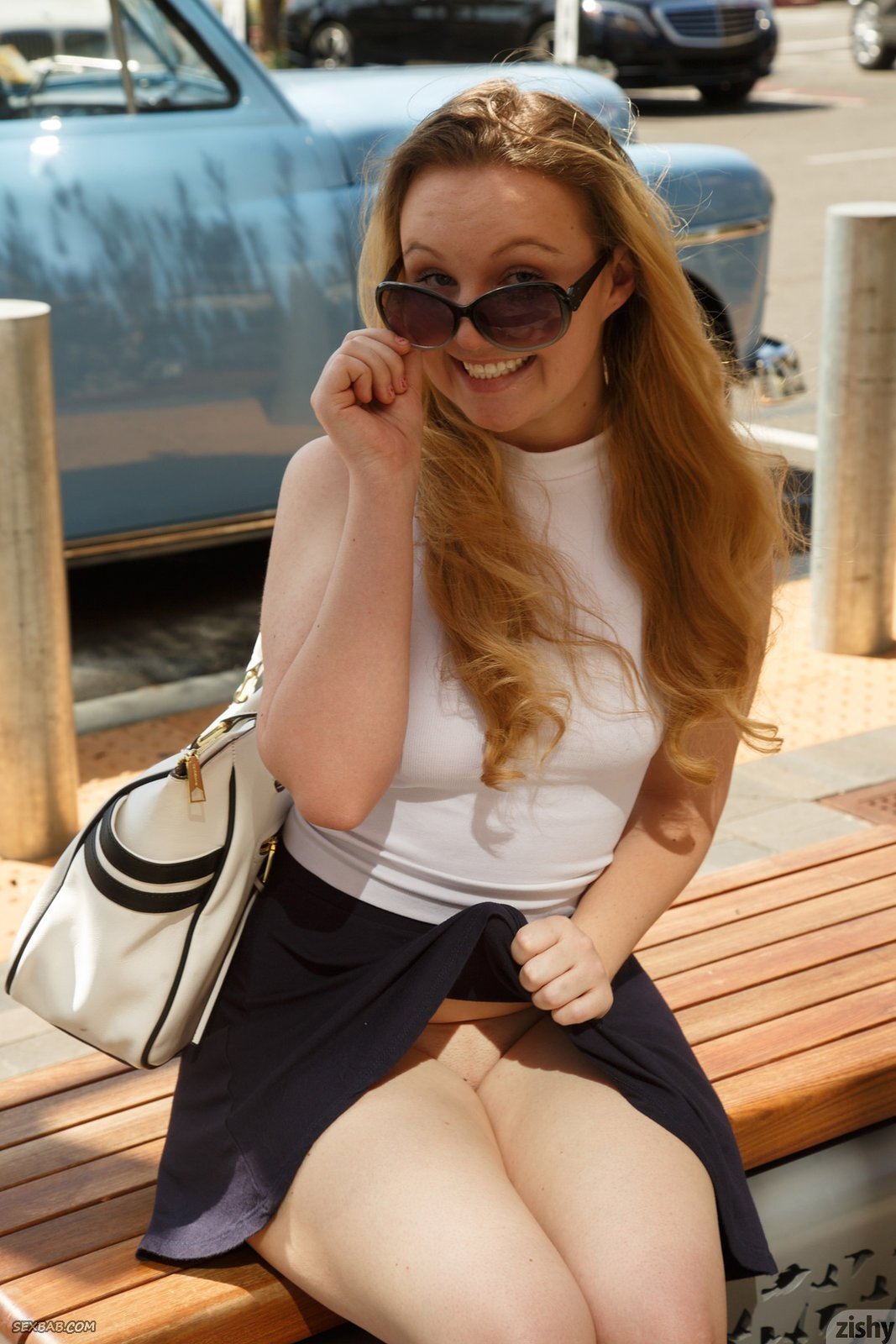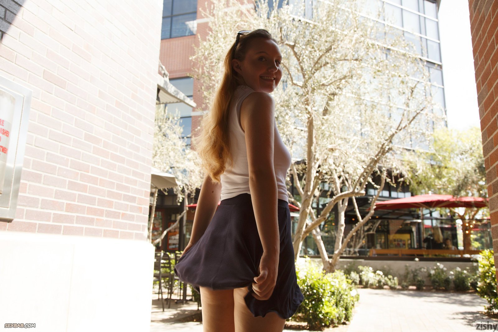 Описание: Надев самую короткую юбку, симпатичная девка, гуляющая на улице, в некоторые моменты старается засвечивать красные трусики и бритую письку. От процессам молодая героиня с сочными ягодицами ощущала удовольствие и возбуждение, широко улыбаясь и строя глазки.