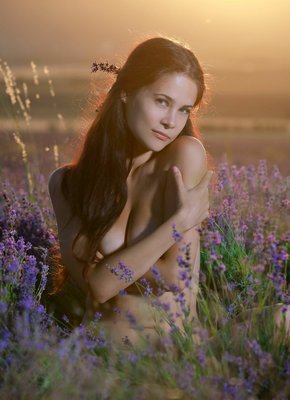 Описание: Эротично позируя перед камерой в лифчике и легкой струящейся юбке, красивая брюнетка с большими сочными сиськами устроила стриптиз на природе. Затем обнаженная девушка ложится в высокую траву с цветами и, нежно поглаживая себя в самых интимных местах, безумно возбуждающе раскрывает перед нами потрясающие виды на голую промежность с бритую писькой.