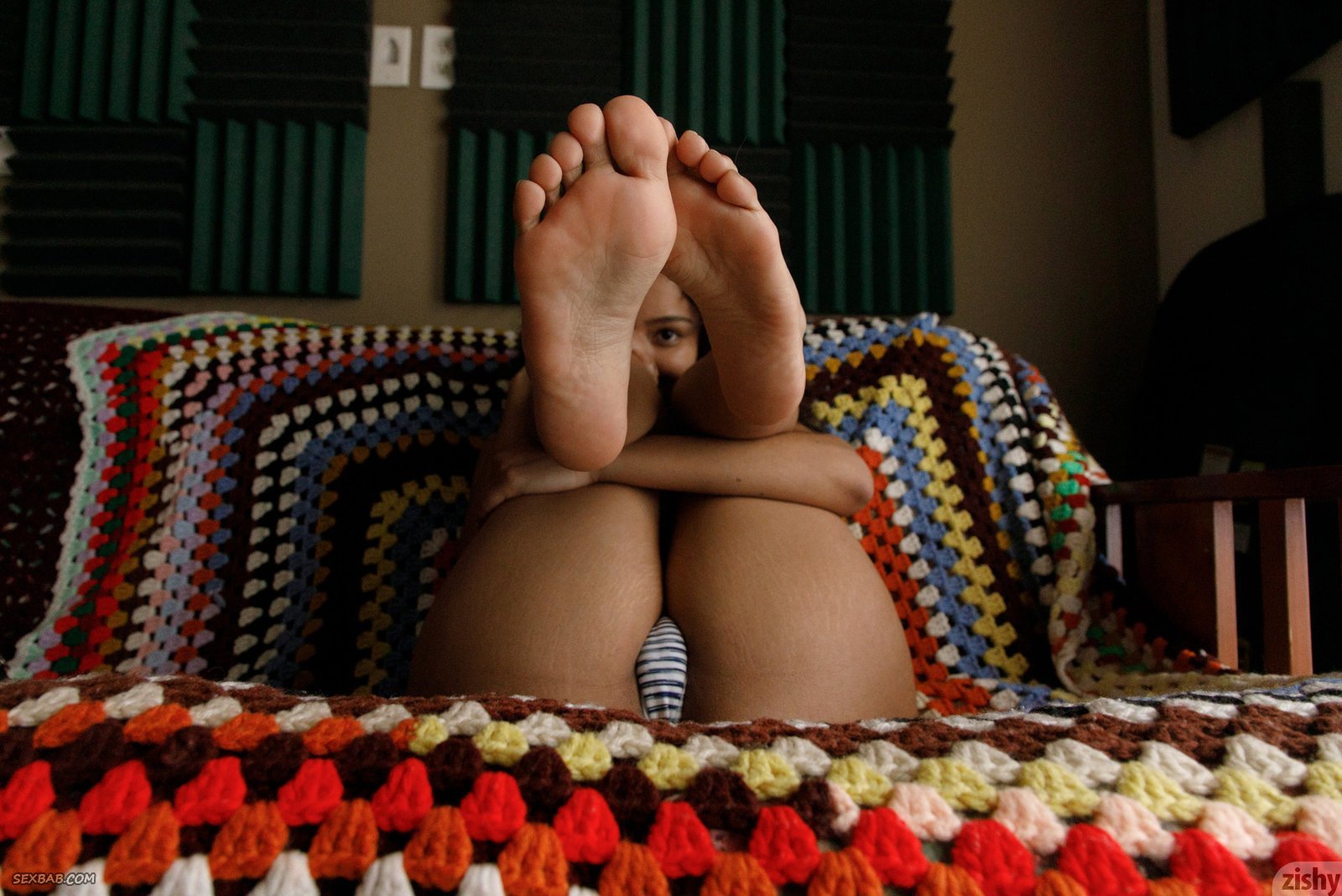 Описание: Прогулявшись на улице и вернувшись домой, весьма симпатичная молодая индуска в очках устраивается на диване и раздевается до трусов снимая с себя джинсы. Возбуждающе поднимая ноги и обхватывая их руками, сексуальная девушка акцентировала внимание на ляжках с попочкой, получая при этом желаемое наслаждение.