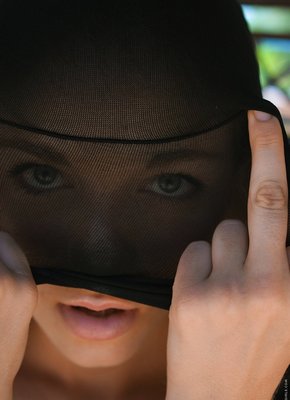 Описание: Натянув на голое тело черные колготки с прорезью между ног и накинув пиджак, белокурая девица с кудрявыми локонами устраивается на дачкой качели и возбуждающе позирует, особенно часто поворачиваясь красивой жопой. В дальнейшем заведенная блондинка все же раздевается и так же демонстрирует маленькие сиськи с бритой писькой.