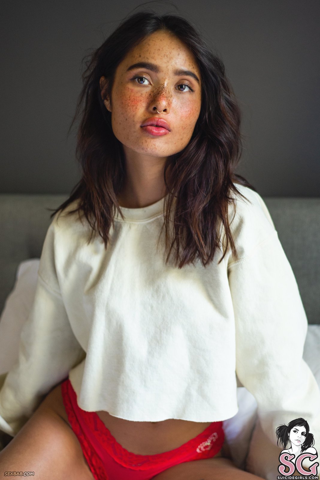 Описание: Располагаясь на кровати и принимая там самые возбуждающие позы, красивая девушка с веснушками и пухлыми губками вскоре скидывает с себя кофту и красное нижнее бельё. Обнаженной стройняшка продемонстрировала маленькие сиськи и гладко выбритую письку с аккуратной попочкой.