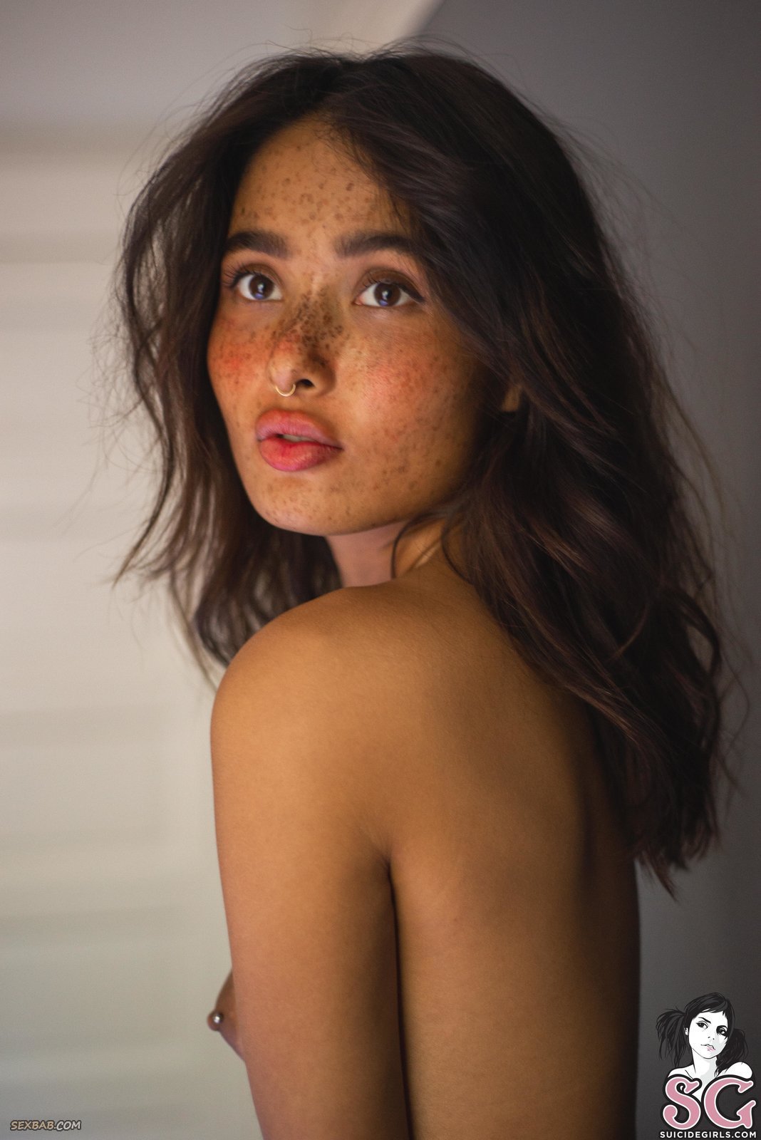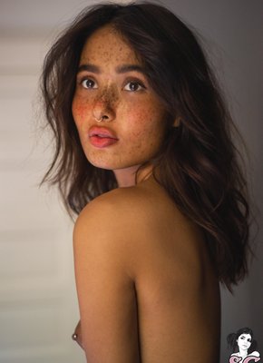 Девушка с веснушками и пухлыми губками