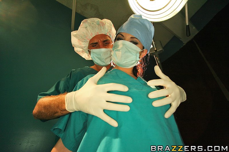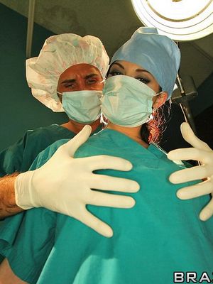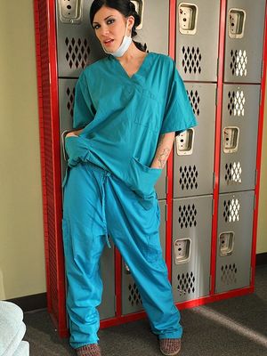 Сексапильная помощница хирурга расслабляется после работы