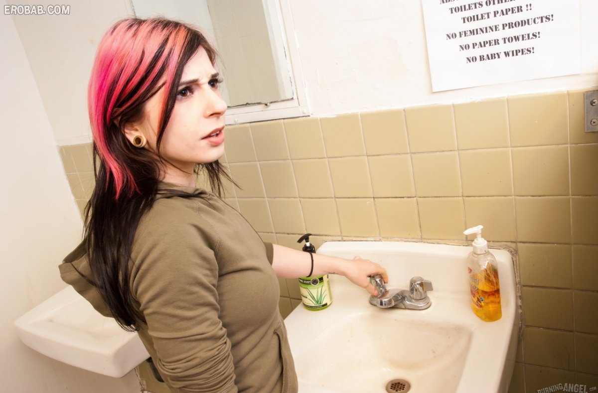 Брюнетка в туалете сосет елдак со всех сторон и умывается спермой